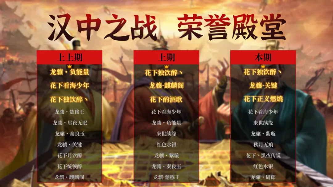 上一周的汉中之战已落下帷幕。沙场之上,是实力与策略的激烈碰撞,更是战术与意志的终极考验。现在,就让我们一同回顾战局,聚焦那些在战场上脱颖而出的英杰!