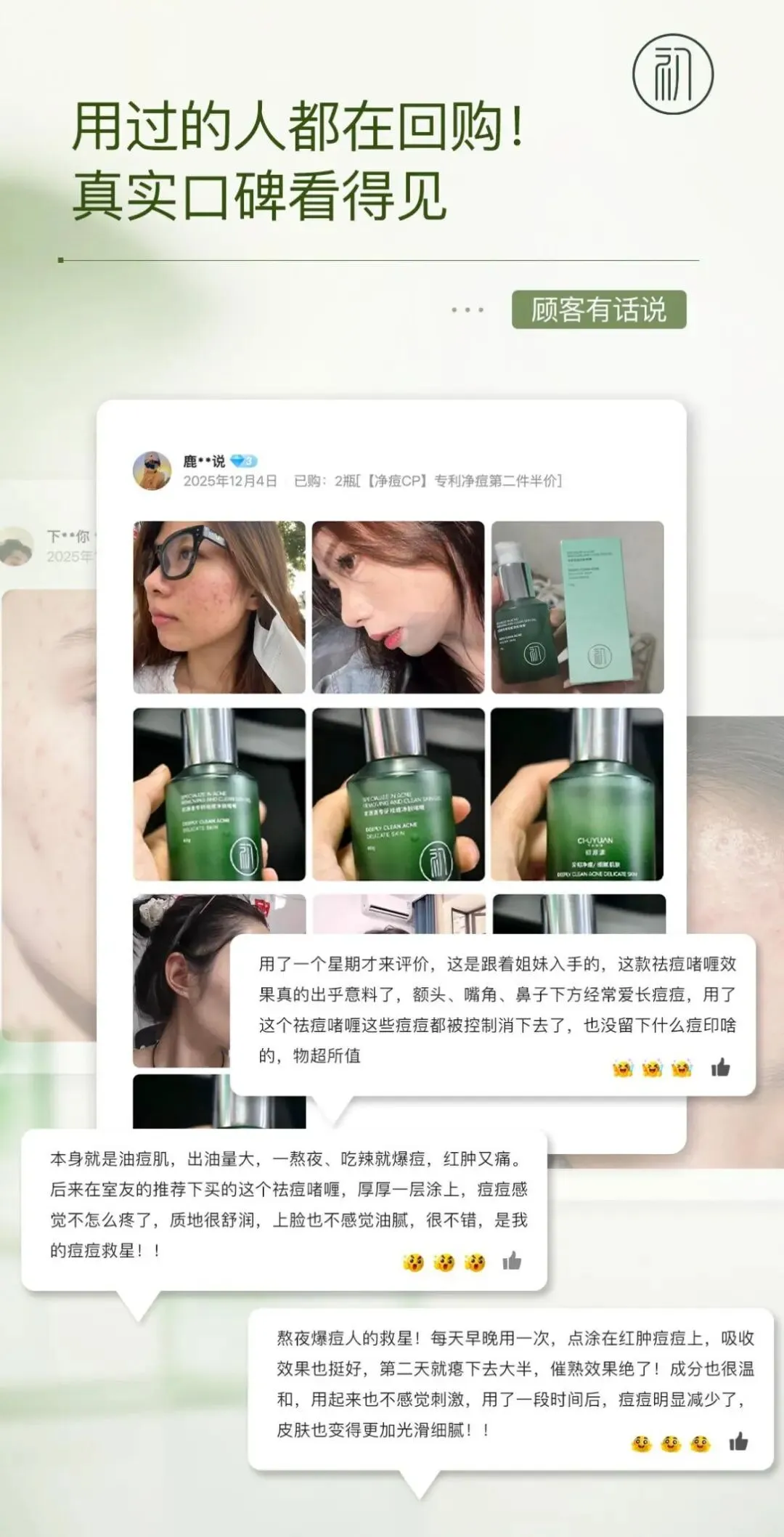 覆盖油皮、敏感肌、混合肌、干皮所有肤质,主打一个“全员适配”!尤其适合经常熬夜、姨妈期必长痘、爱出油的姐妹,还有被闭口、粉刺、红黑痘印困扰的宝子;学生党、敏敏痘肌、医美术后需基础修护的人群也能放心用,甚至青少年油痘肌也适配,无激素、无刺激防腐剂,就算是痘痘反复的“老顽固”,坚持用也能成功上岸!