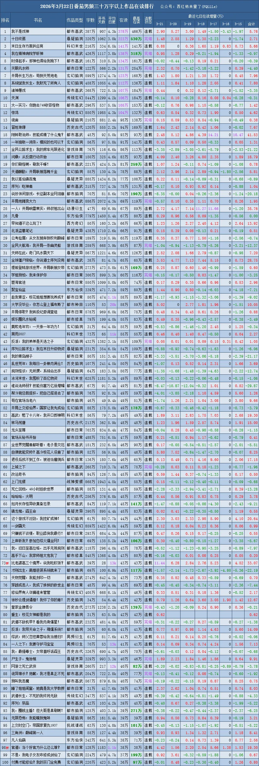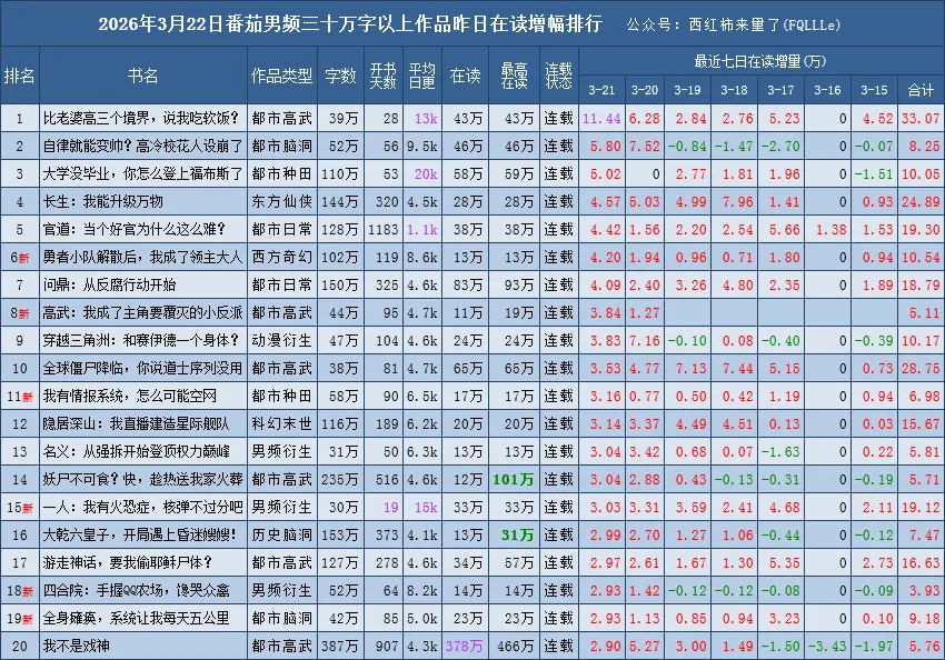 是根据番茄原创阅读榜