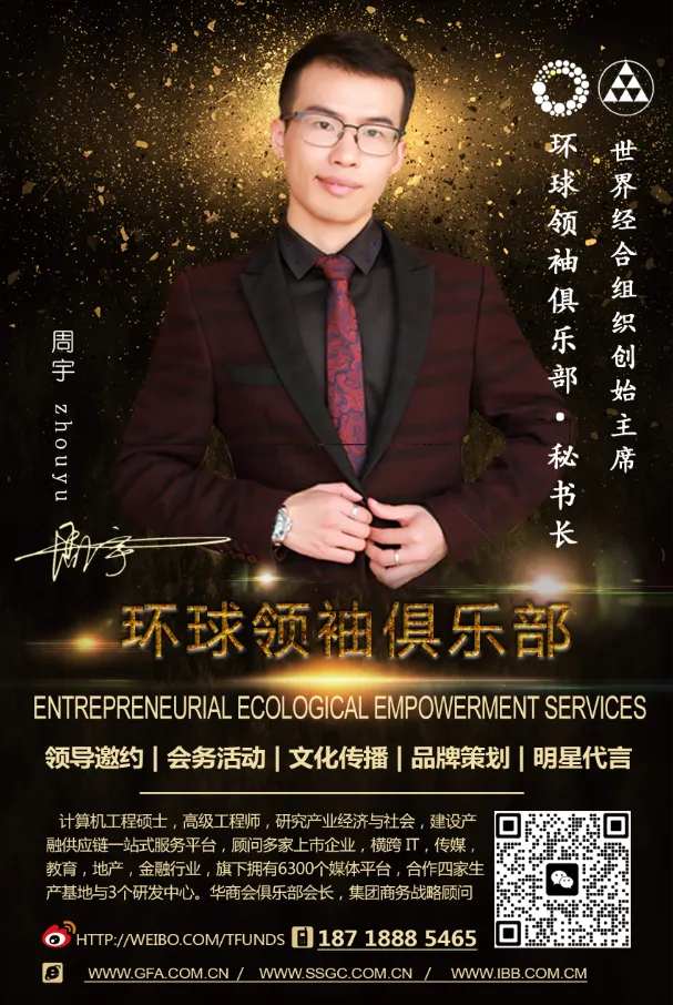 世界领袖交流中心 & 世界华人领袖俱乐部(中国)秘书长周宇导师,汇聚4大领域的领袖共500多位:1、政界-200余位总统总理;2、商界-世界500强总裁;3、学术界-诺贝尔奖得主;4、军界-司令和上将军。国际文化交流活动,与世界各国驻华使馆文化互动,举办文化论坛。