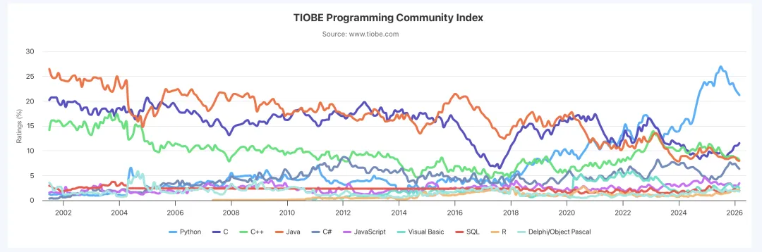 TIOBE指数并非一个“最好语言”的排行榜,而是一个热度与资源规模的度量。它反映的是: