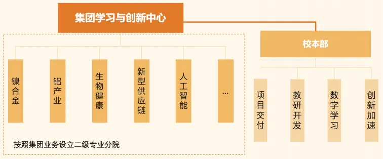体系化架构 学创中心构建了“1校N院”的组织模式。其中,“1校”即广新大学(学创中心),主要负责集团人才工作的顶层设计与员工共性能力培养;“N院”指在各专业领域或重点企业设立的分院,比如新材料分院等,专注行业特色人才培养。这一组织架构实现了“集团抓共性、分院抓专业”的协同机制。