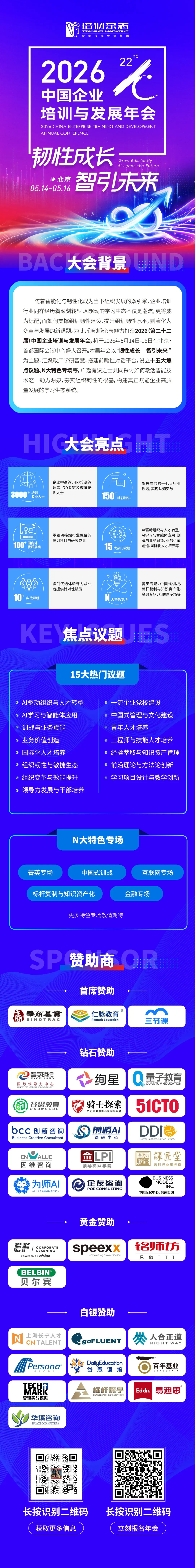 仅看一篇文章还意犹未尽?广新控股集团学习与创新中心负责人李志刚老师将在新华报业传媒集团《培训》杂志主办的第二十二届中国企业培训与发展年会(2026年5月14日-16日,北京·首都国际会议中心)带来主题分享。欢迎查看议程,了解更多详情。
