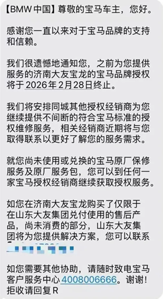 自2月28日起,济南大友宝龙汽车销售服务有限公司【简称:济南大友宝龙】的宝马品牌授权被宝马中国终止授权,而济南大友宝龙背后则隶属于百强汽车经销商集团——山东大友集团有限公司。