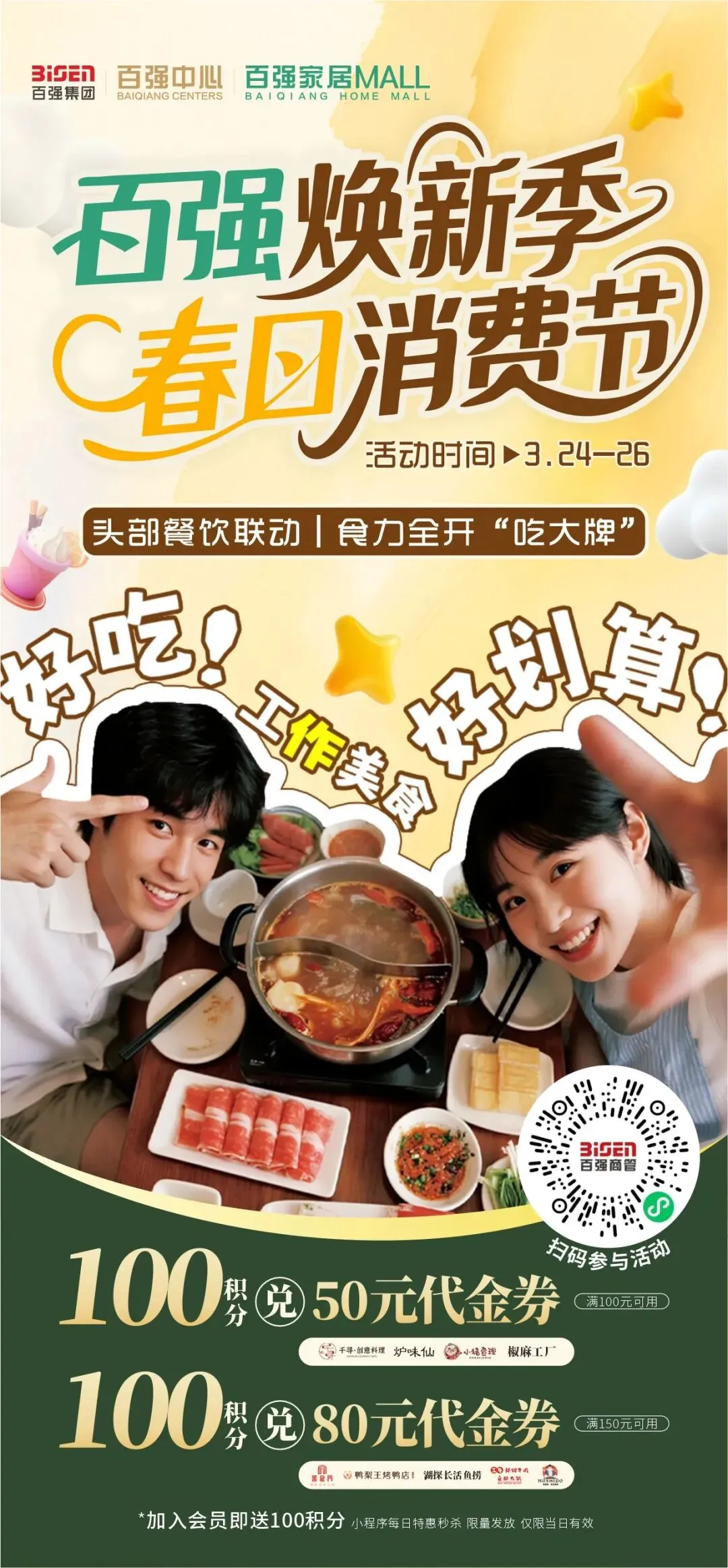好吃!好划算!百强中心春日消费节,餐饮联动福利拉满!