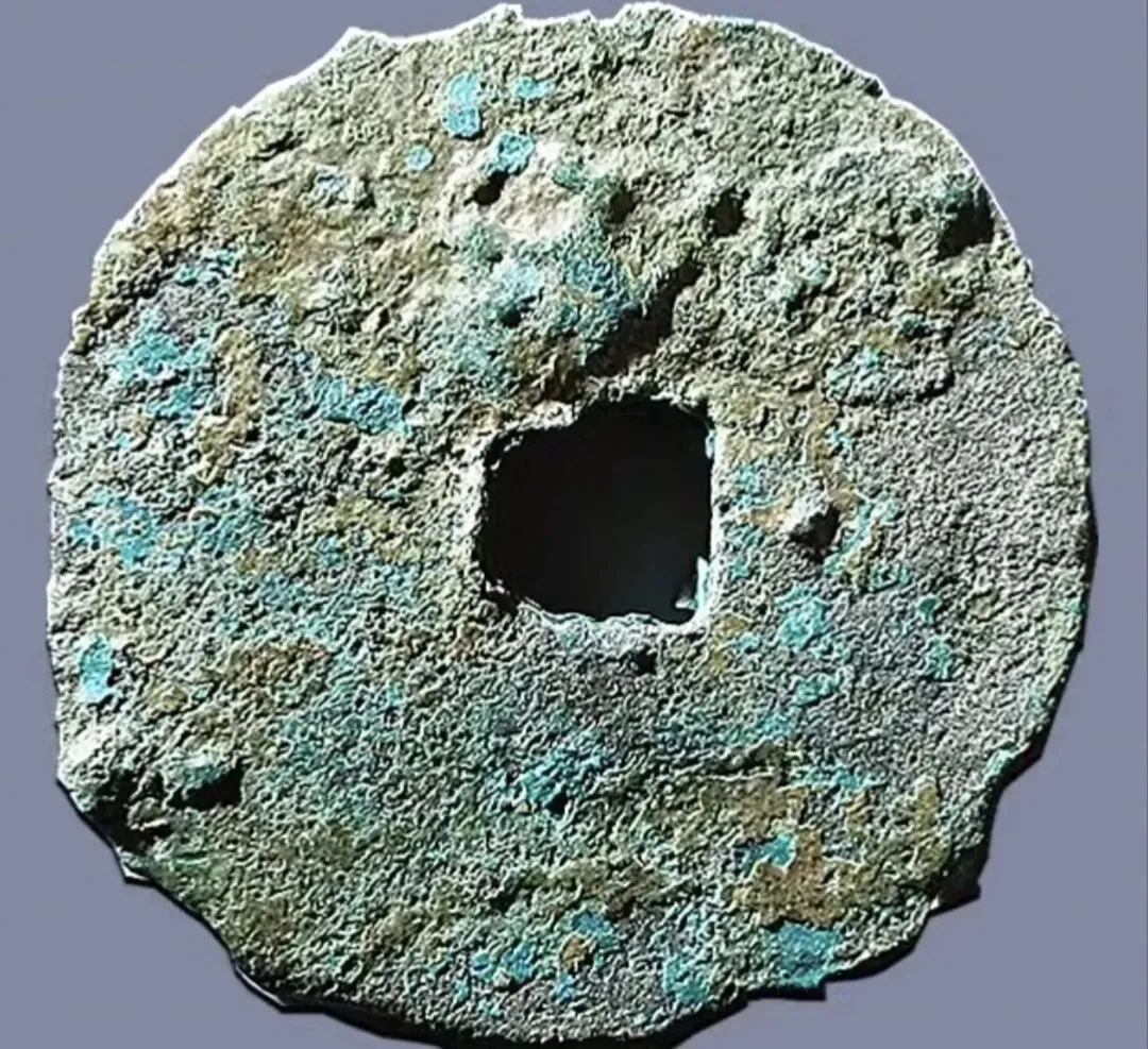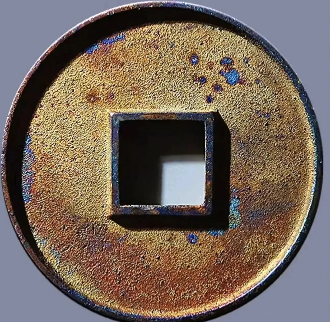 元代至正之宝背权钞5分 尺寸直径43.3mm,厚度2.8,重18.7g,