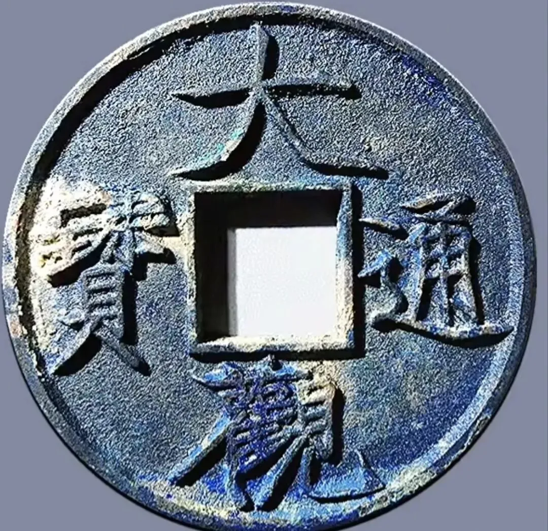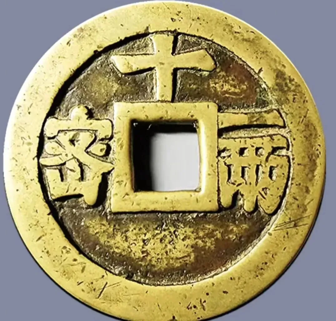 明代大中通宝背十浙,尺寸,直径46.3mm,厚度3.7,重27.6g,成交价2万5900元。