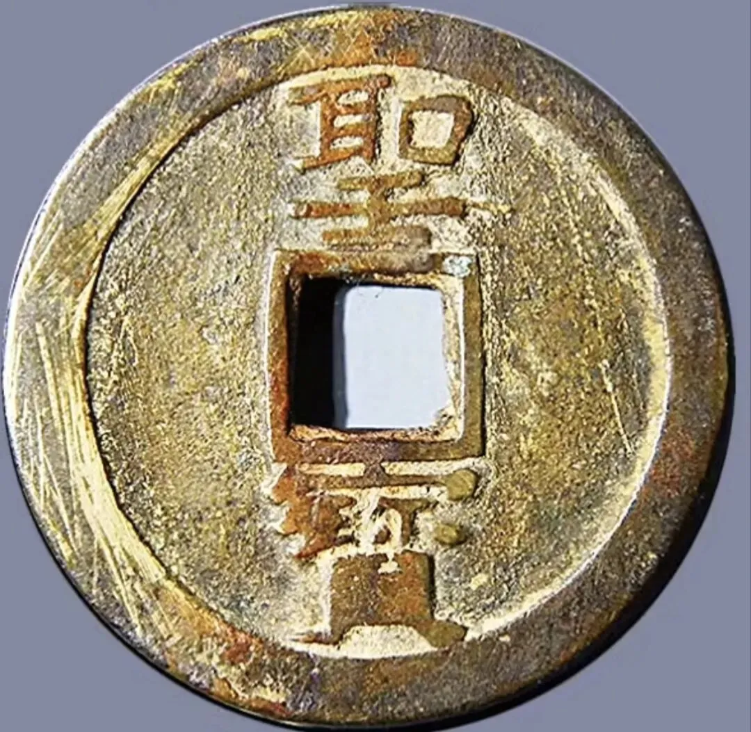 西夏天庆宝钱,尺寸直径24.4mm,厚度1.6,重4.1g,成交价4500元。