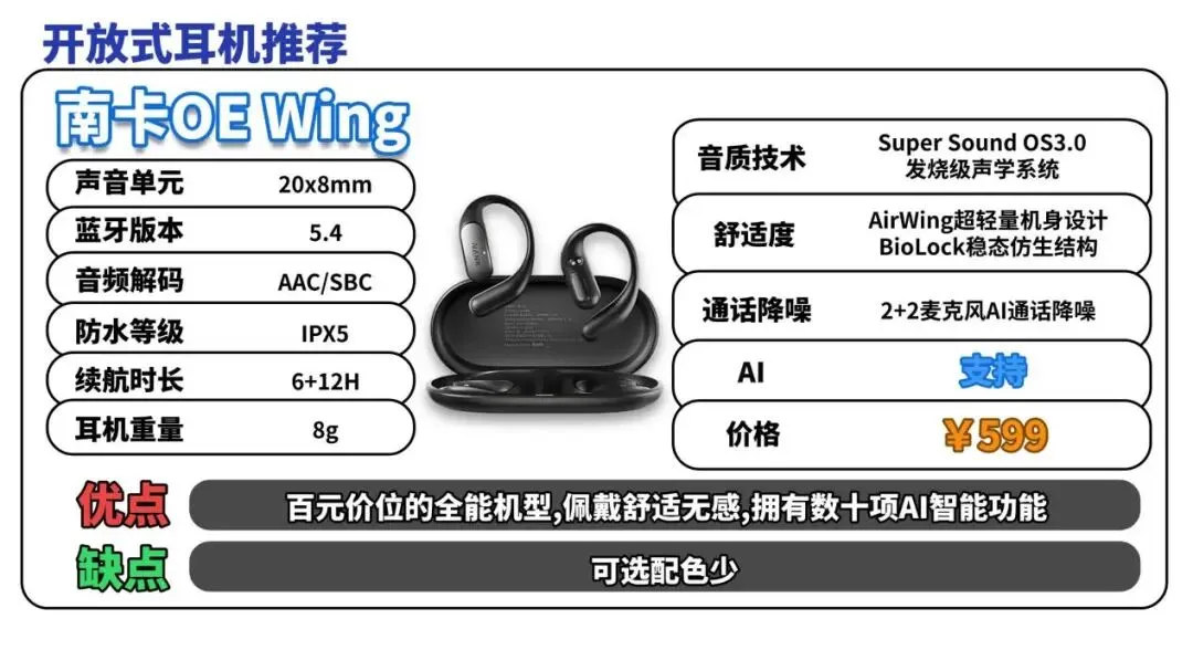 开放式耳机推荐TOP1:南卡OE Wing(¥599)
