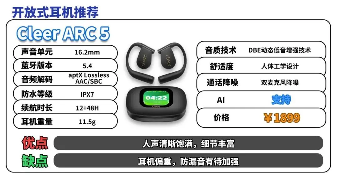 推荐理由:定向精准传声减少漏音,同时支持连接2个蓝牙设备