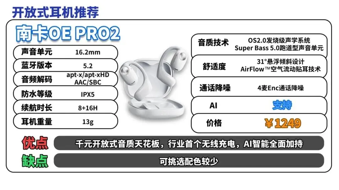 开放式耳机推荐TOP4:南卡OE Pro2(¥1249)