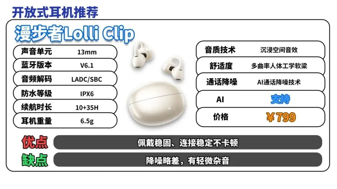 开放式耳机推荐TOP6:漫 步者Lolli Clip(¥799)