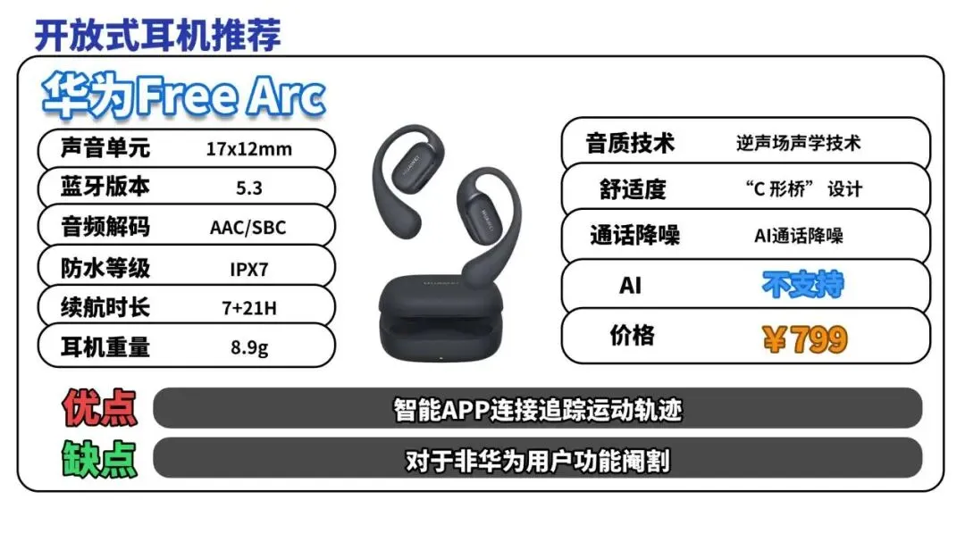 开放式耳机推荐TOP7:华 为FreeArc(¥799)