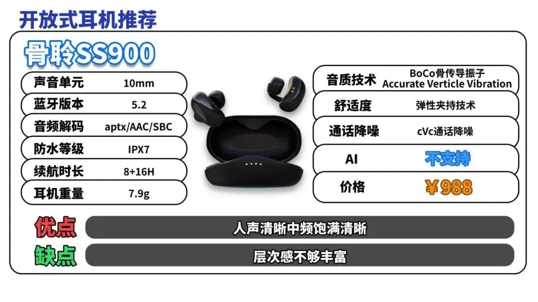 开放式耳机推荐TOP8:骨 聆SS900(¥988)