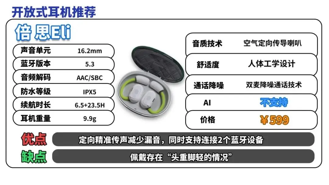 开放式耳机推荐TOP10:倍 思Eli(¥599)