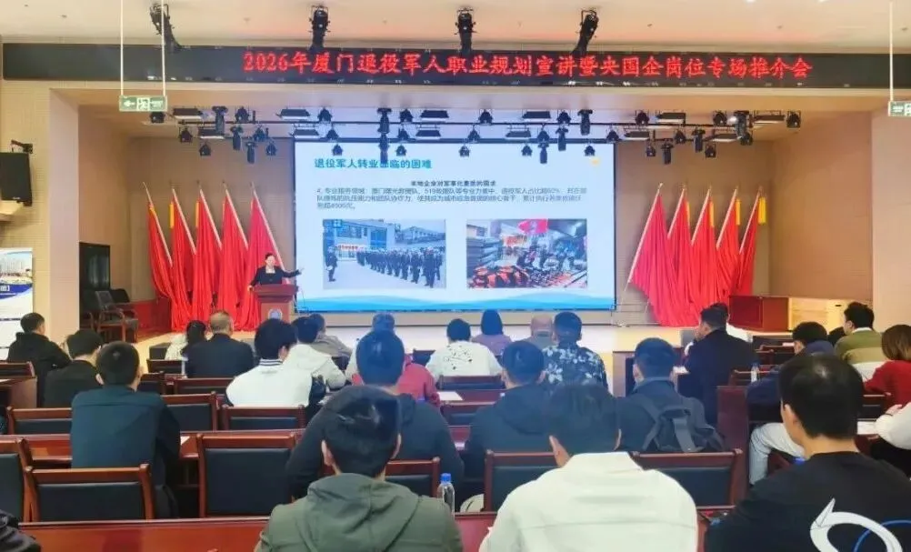 3月24日上午,市退役军人事务局会同专业求职机构在军休大厦举办2026年退役军人职业规划宣讲暨央国企岗位专场推介会,我市80余名春季退役士兵参会。