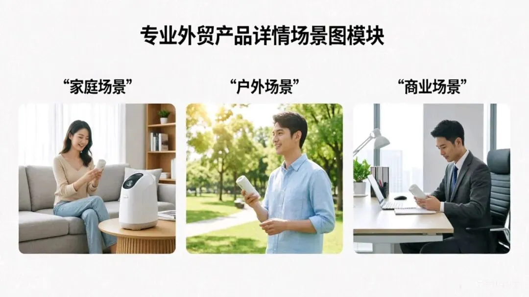 国际范的场景图,不是简单摆拍,而是精准匹配目标市场的使用习惯。