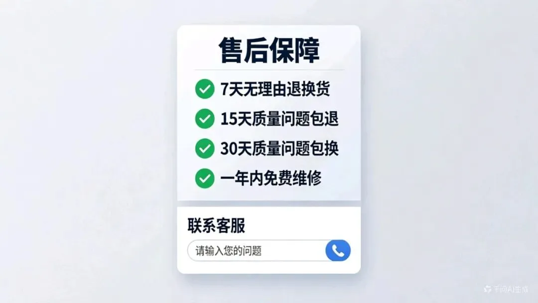 - 工厂误区:售后政策模糊不清,只写“质保一年”,不说明具体质保范围和售后流程