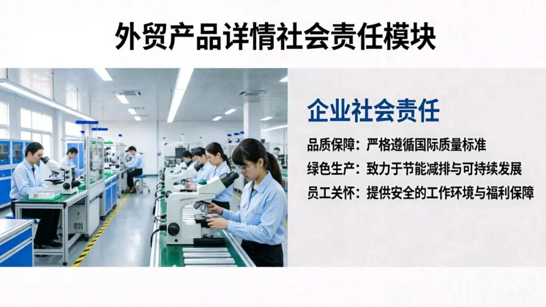 5. 社会责任模块:打动海外买家的“隐形加分项”