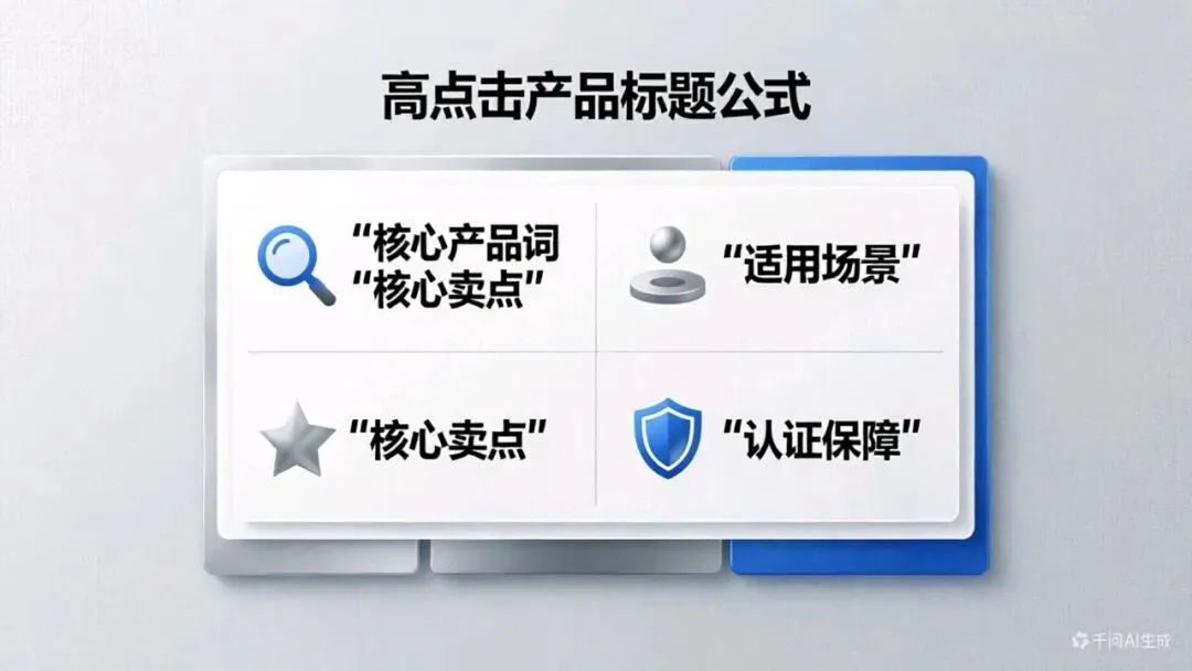 黄金公式:核心产品词 + 核心卖点1 + 核心卖点2 + 目标人群/适用场景 + 认证/保障