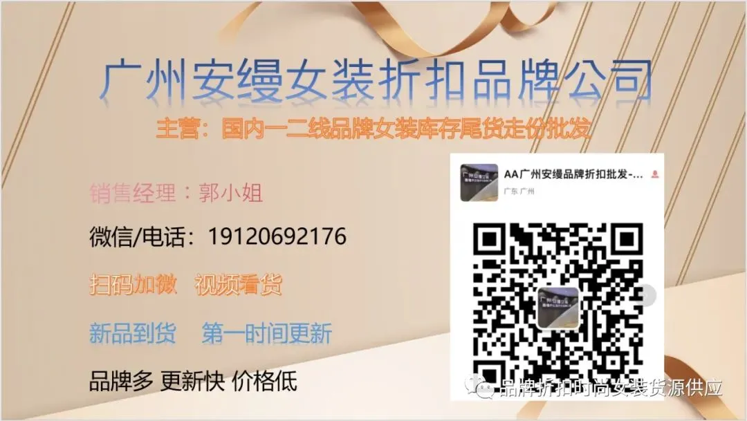 广州市安缦服饰有限公司,专业经营品牌折扣女装。经过长时间的经营积累,我们的经营过的的品牌女装有:杰茜卡的秘密、知恩、江南布衣、我爱露露、朗美睿、诱货 、纳纹、马克华菲、未知未觉、慕拉、秋水伊人、 迪卡轩、晒谷场、季候风、雾道等品牌,常年合作品牌1000+,公司展示厅长期展示品牌有 15-20,并且每天更新品牌 3 - 5 个,货源充足,稳定!是品牌折扣公司、服装市场批发商、品牌特卖场、品牌折扣店、各大直播间、外贸服装店、精品零售店的优先进货渠道。欢迎广大客户前来公司现场看货及交流!