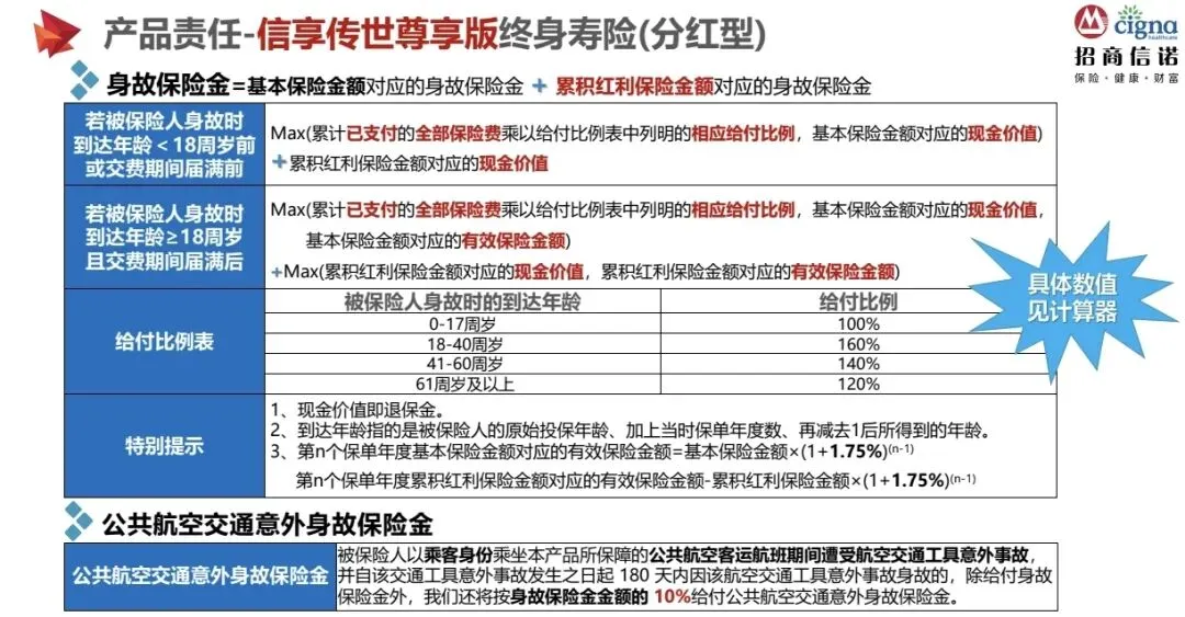 - 累计已交保费 × 对应给付比例(18周岁前100%;18-40岁160%;41-60岁140%;61岁及以上120%)。