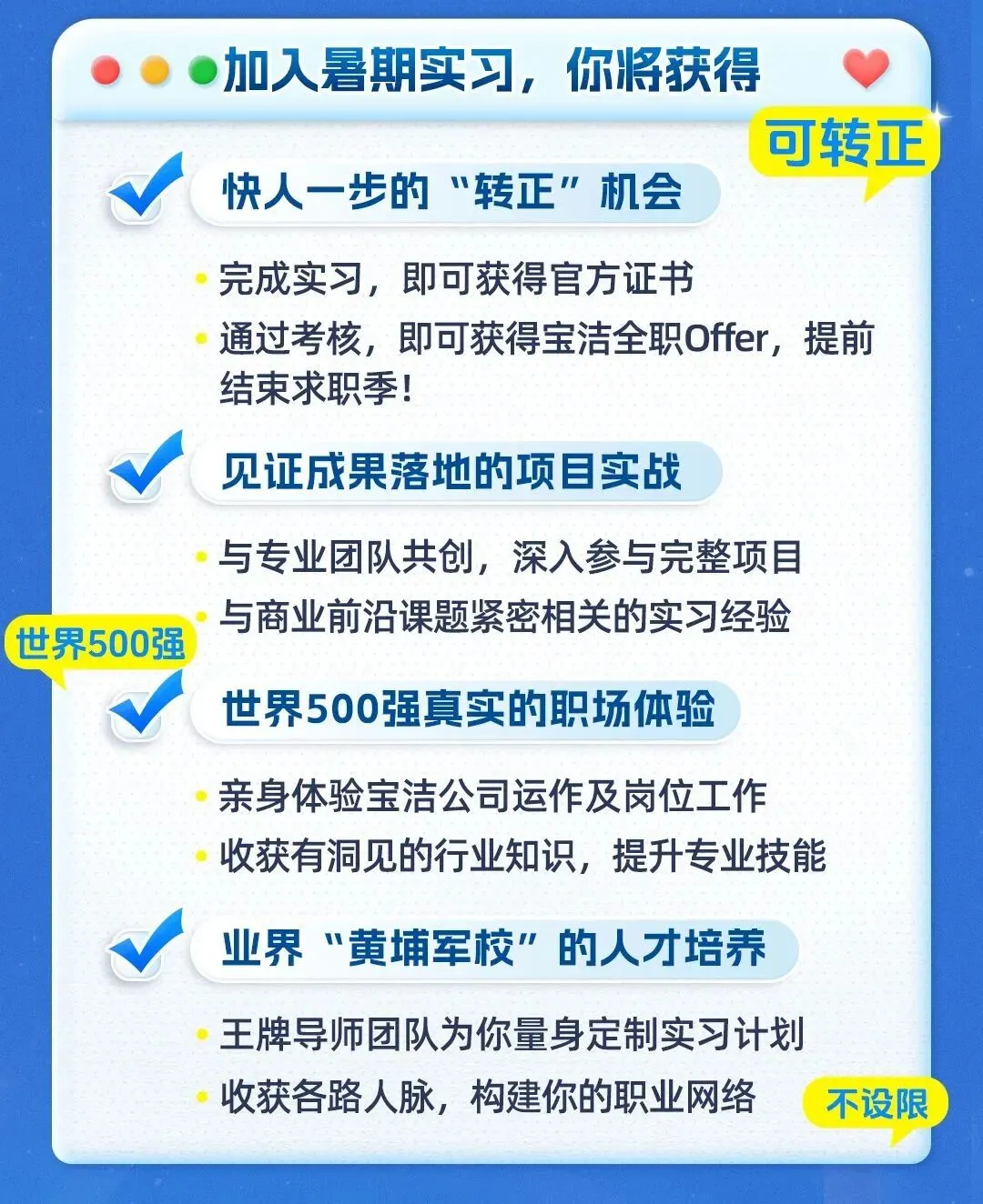 世界500强外企 宝洁2026春季校园招聘(暑期实习生/全职)开启!