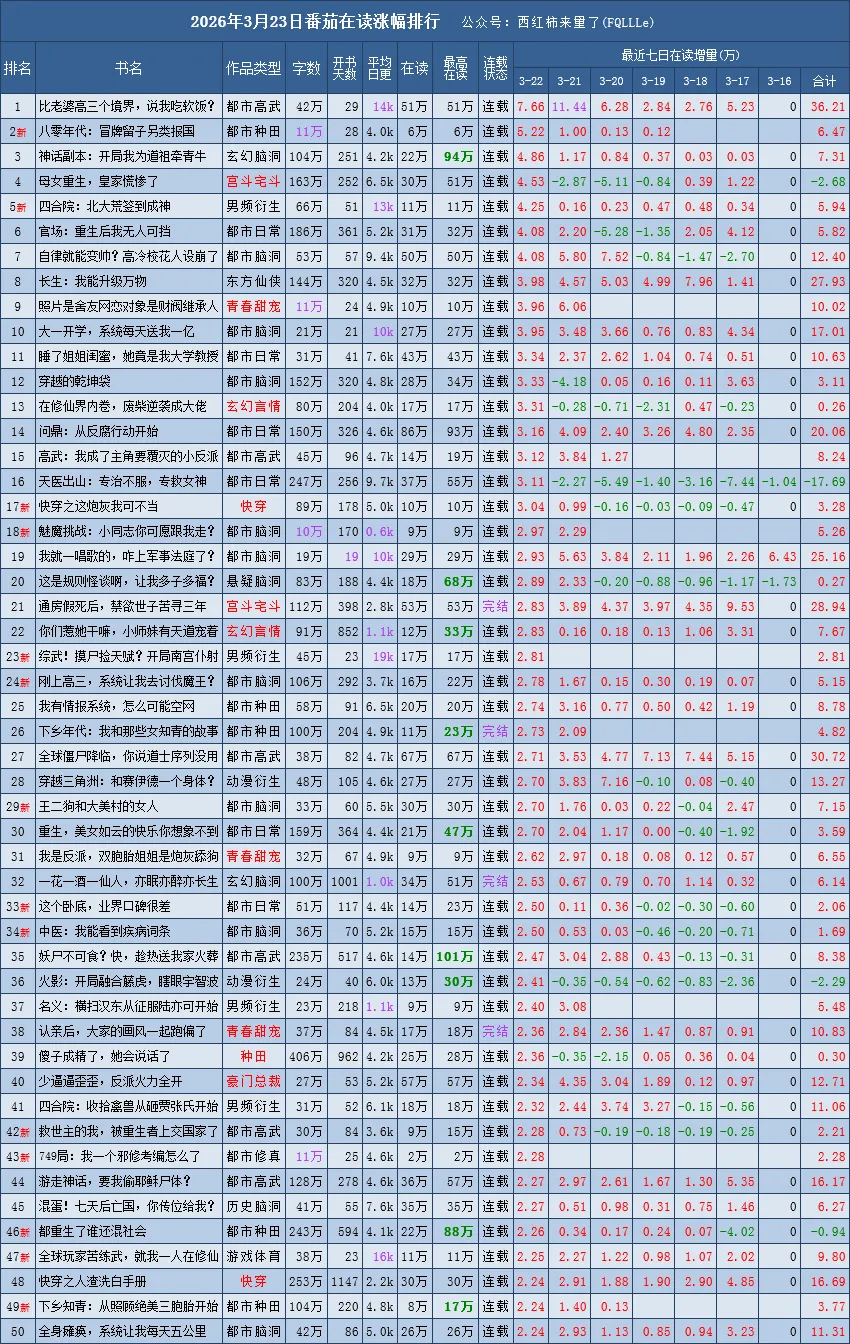是根据番茄原创新书榜、阅读榜的在读数据