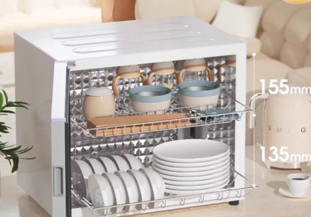 考虑到消毒柜至少可以使用2-3年,建议“买大不买小”。20L-25L是大多数家庭的黄金选择,既能满足日常奶瓶消毒,也能应对后续餐具、牙胶甚至小型玩具的消毒需求,避免因容量不足而二次消费。