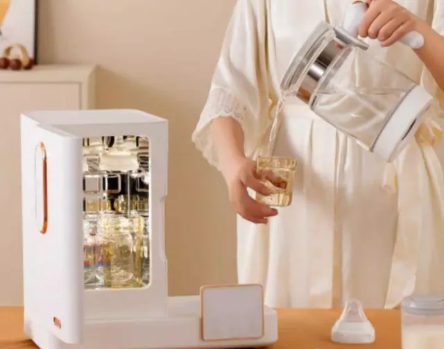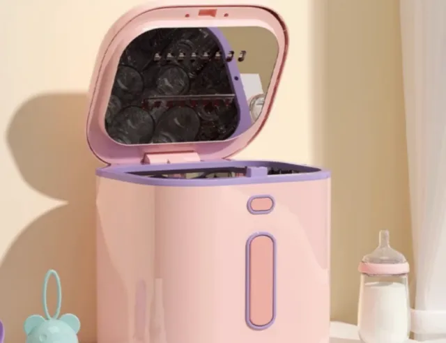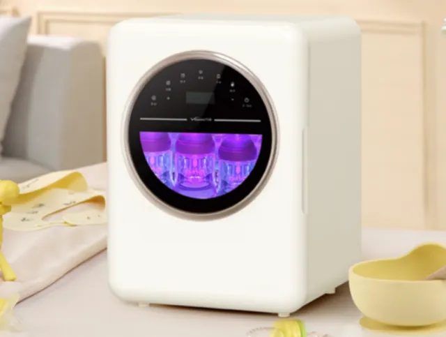 新生儿阶段(0-6个月)喂养频繁,每天需消毒8-12个奶瓶及配件。建议选择可一次容纳8-10个以上奶瓶的容量(约18L-22L),这样无需频繁启动,更省时省电。