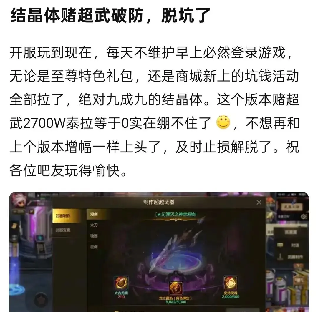 至于氪佬,则是因为开不出龙睛而导致超武制作成本不断提升。