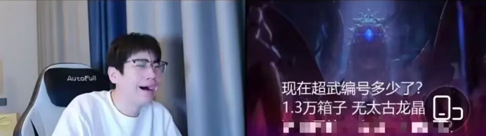 前面也说了,被超武制作整到破防的人不在少数,记得开服第一天,官签主播“陈不可”因1.3万个礼盒开不出龙睛直接戴上“痛苦面具”,差点就直播摔手机了。