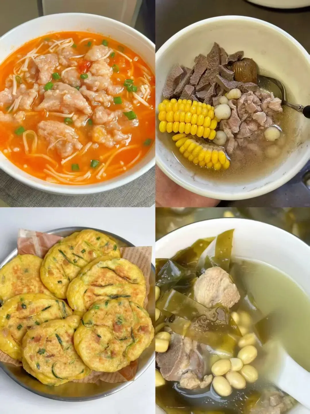 每到春天的时候,就是给孩子改善体质和长身高的最佳时期,往往在这个时候,我都会给孩子做一些能量菜,这可以让孩子身体更健康,让孩子个子猛长。今天我就把自己春天经常做的4种美食分享给大家,作为父母的你有时候一定要做给孩子吃哦。第一步:猪肉切薄片,加点盐拌匀,红薯淀粉用水微微打湿,加入到肉片中,抓拌匀,让每一片肉都裹上粉第二步:热油下番茄丁翻炒,可以加一点盐更容易出汁,然后加适量水,水开下入金针菇煮3分钟,转小火均匀的下入肉片,再转中火煮2分钟第一步:猪横利切片,然后焯水备用,瘦肉切片,玉米一分为四切开备用。第二步:把所有食材都放入炖盅,加水,上锅蒸40-60分钟,出锅加盐即可,汤水清甜生津,一点都没有怪味,超级好喝!主要食材:面粉150g 、酵母2g 、鸡蛋一枚、 肉末适量 、小葱适量第一步:洗干净一个大碗,碗中倒入150克面粉,110克清水和2克酵母再加一个鸡蛋,用筷子充分搅拌均匀,用个保鲜膜盖着放入冰箱冷藏发酵一个晚上。第二步:发酵好的面糊表面呈蜂窝状,用筷子搅拌排排气,黄瓜擦丝,加少许盐杀出水分,肉沫加淀粉、酱油、辅食油和葱花搅拌均匀。第三步:把擦好的黄瓜丝和肉末倒入去面糊中,用你的左手把它搅拌均匀,拿出一个82年的平底锅,锅热刷油,倒入面糊,小火煎至两面金黄熟透即可。主要食材:海带200克,黄豆50克,排骨半斤,姜2片第一步:买回来的猪骨砍小块,然后把猪骨焯水,海带洗干净(干的要泡开,新鲜的不用泡),黄豆提前浸泡2小时,也可以提前一晚上泡好。第二步:用一个沙锅,没有沙锅的就不要煲了