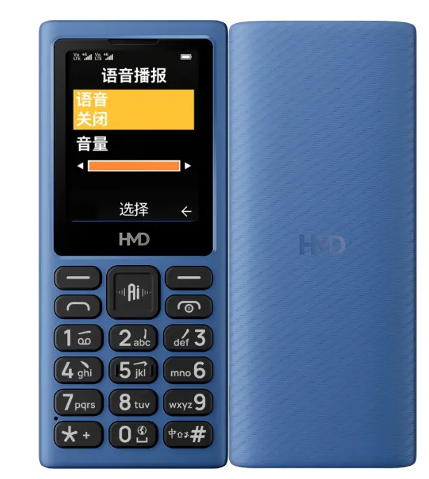 HMD 101 支持 4G 全网通,兼容移动、联通、电信、广电四大运营商,通话、上网都顺畅。2.0 英寸 LCD 屏幕采用大字体、大按键设计,操作简单直观,视力不佳的长辈也能轻松使用。内置 AI 助手,语音就能拨号、设提醒、查天气,不用手动输入,对长辈特别友好。