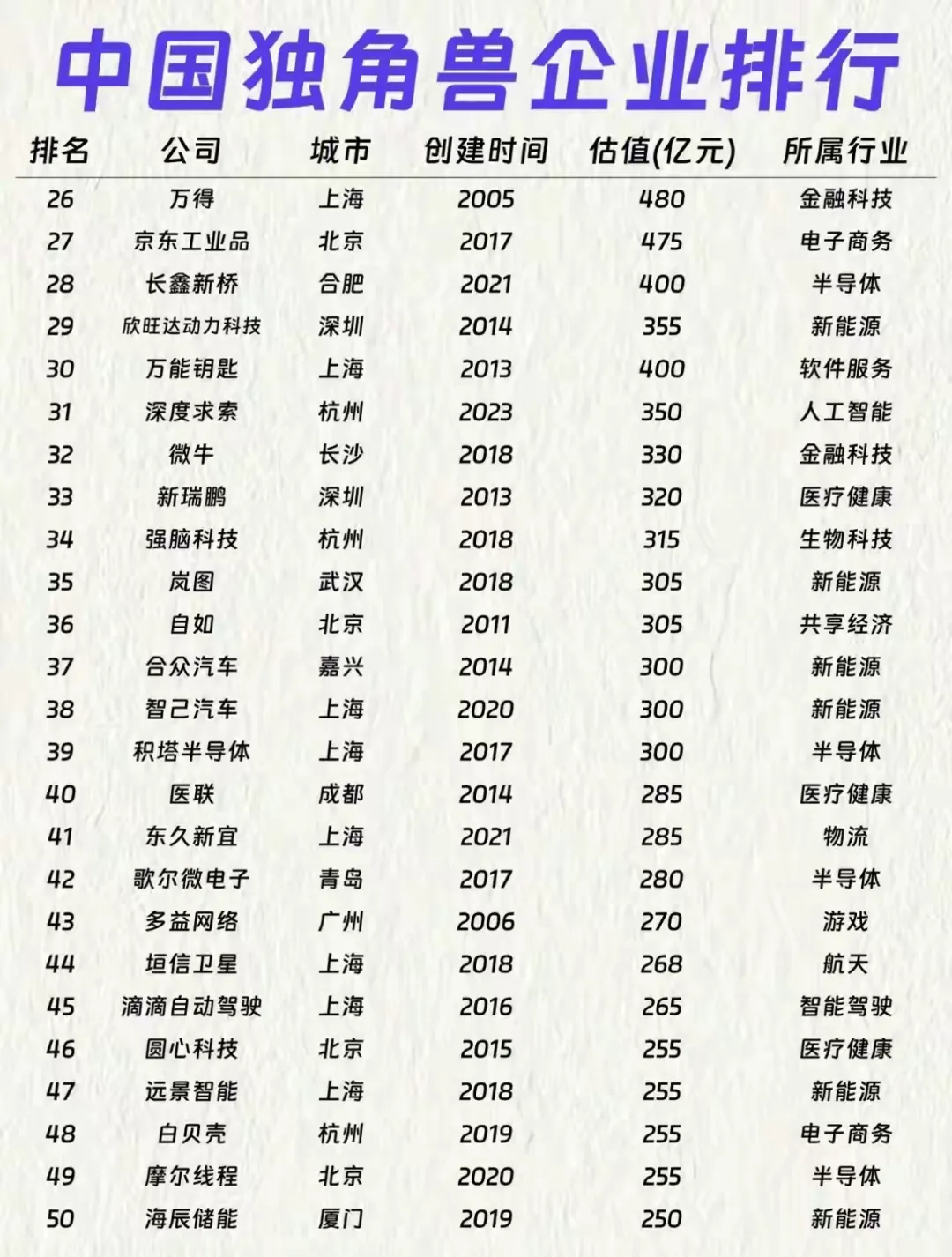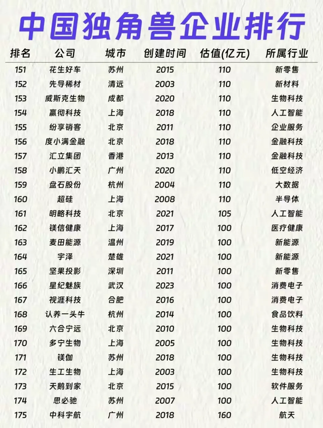 有意思的是,不少2020年后成立的企业也冲进了榜单,比如引望智能、深度求索,新赛道的爆发力真的不容小觑。你最看好哪个赛道的独角兽?有没有你身边的公司上榜?