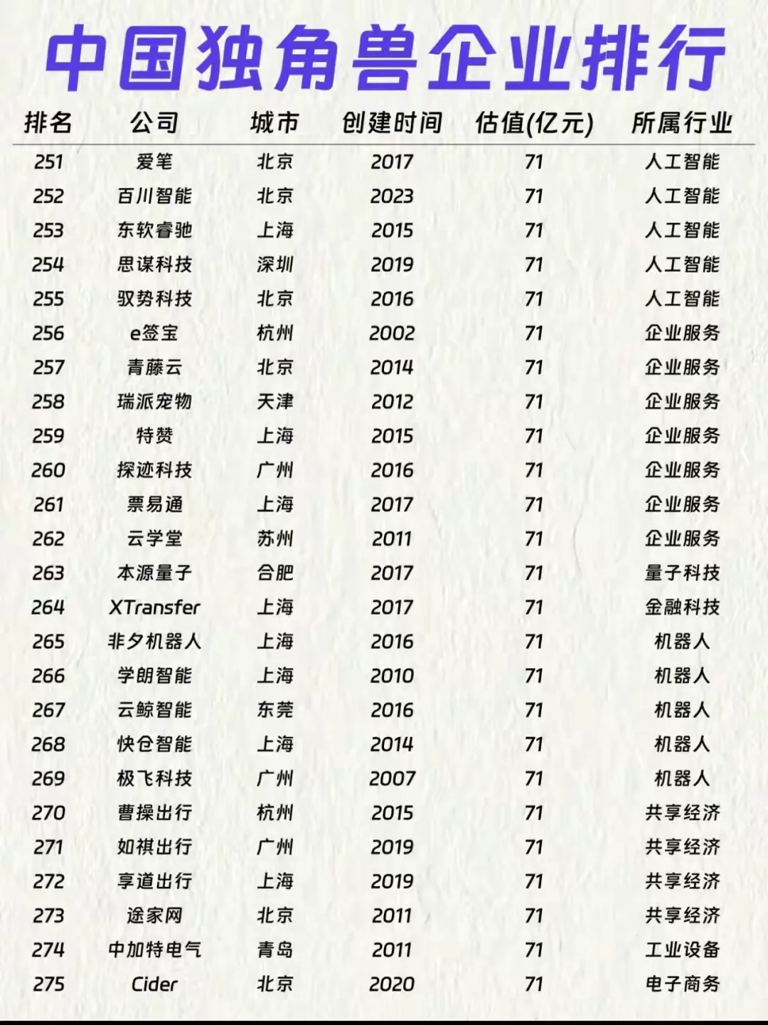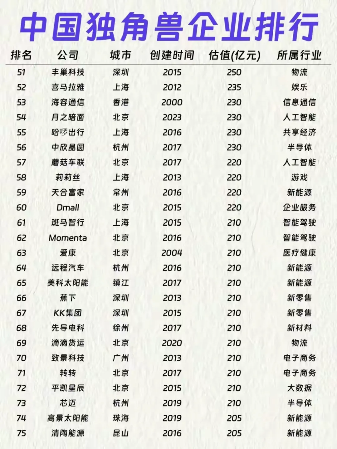 细看下来,新能源、半导体、人工智能成了绝对主力,广汽埃安、大疆、引望智能这些名字格外亮眼。城市分布上,北京、上海、深圳、杭州依然是独角兽大本营,东莞、合肥这些新势力城市也跑出了不少潜力股。