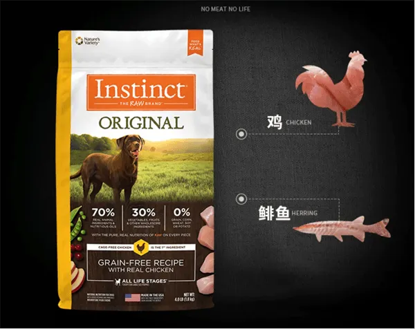 这款狗粮的肉类蛋白原料采用鲜肉与肉粉组合的形式,主要肉源为无笼散养的北美走地鸡,能为狗狗提供优质的蛋白质供给。同时,产品中添加了多种果蔬,可补充丰富的维生素、矿物质及膳食纤维。从营养指标来看,其无谷鸡狗粮的粗蛋白含量≥37%、粗脂肪含量≥20%,能够满足狗狗日常生长与运动所需的能量,整体属于高蛋白、中脂肪的配方。