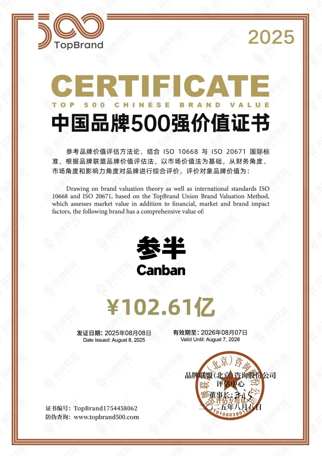 当下,在消费升级与内外需扩容的双重驱动下,中国品牌正迎来历史性发展机遇。此次,参半入选2025中国品牌500强,不仅是一份荣誉见证,更是中国新消费品牌活力迸发的生动缩影,展现出中国新锐品牌的强劲韧性。