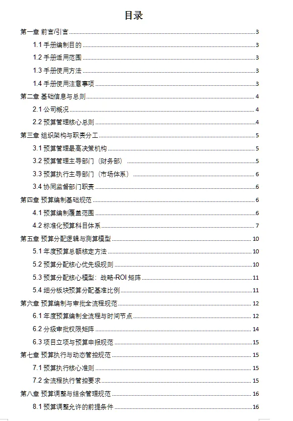 2.手册按「基础规则-操作流程-管控规范-合规要求-配套工具」的逻辑编排,预算申报人员可重点查阅第四至第七章,审批与监督人员可重点查阅第三、第八至第十章。
