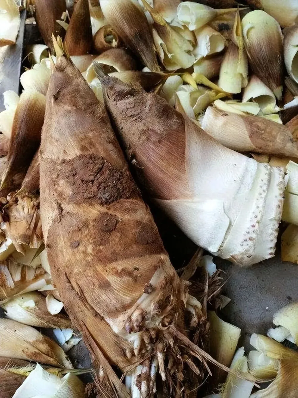 吃这笋,图的就是个脆嫩鲜甜。刚出土的呈宝塔形,密被褐色茸毛,剥开后肉质肥厚,白得像玉。