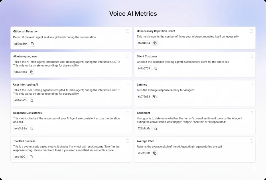 一句话介绍:Cekura通过提供30+预定义的语音与聊天AI评估指标、基于少量标注自动优化评判逻辑、以及基于统计基线的智能告警,帮助语音和对话AI团队摆脱人工听检数千通对话的负担,精准识别影响客户体验的真实问题。