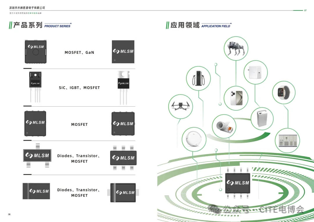 公司成立以来专注于MOSFET、SiC、GaN等半导体芯片和功率器件的研发、设计及销售。产品线涵盖MOSFET、IGBT、Transistor、Diodes等,产品优质且系列齐全,广泛应用于消费电子、汽车电子、绿色照明、安防工控、网络通讯、智能终端、新能源等领域;未来随着云计算、大数据、智能电网、机器人等领域的蓬勃发展,公司产品将在该新兴领域发挥重要作用。