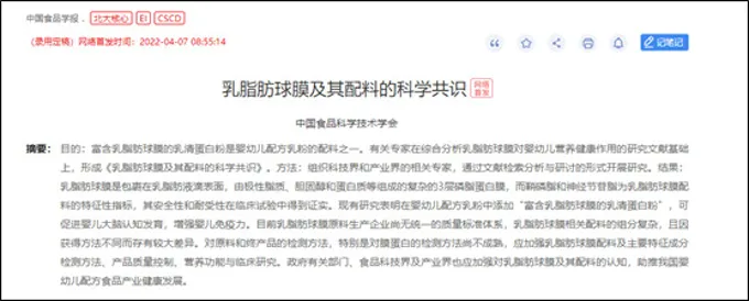 首份《乳脂肪球膜及其配料的科学共识》于《中国食品学报》刊发