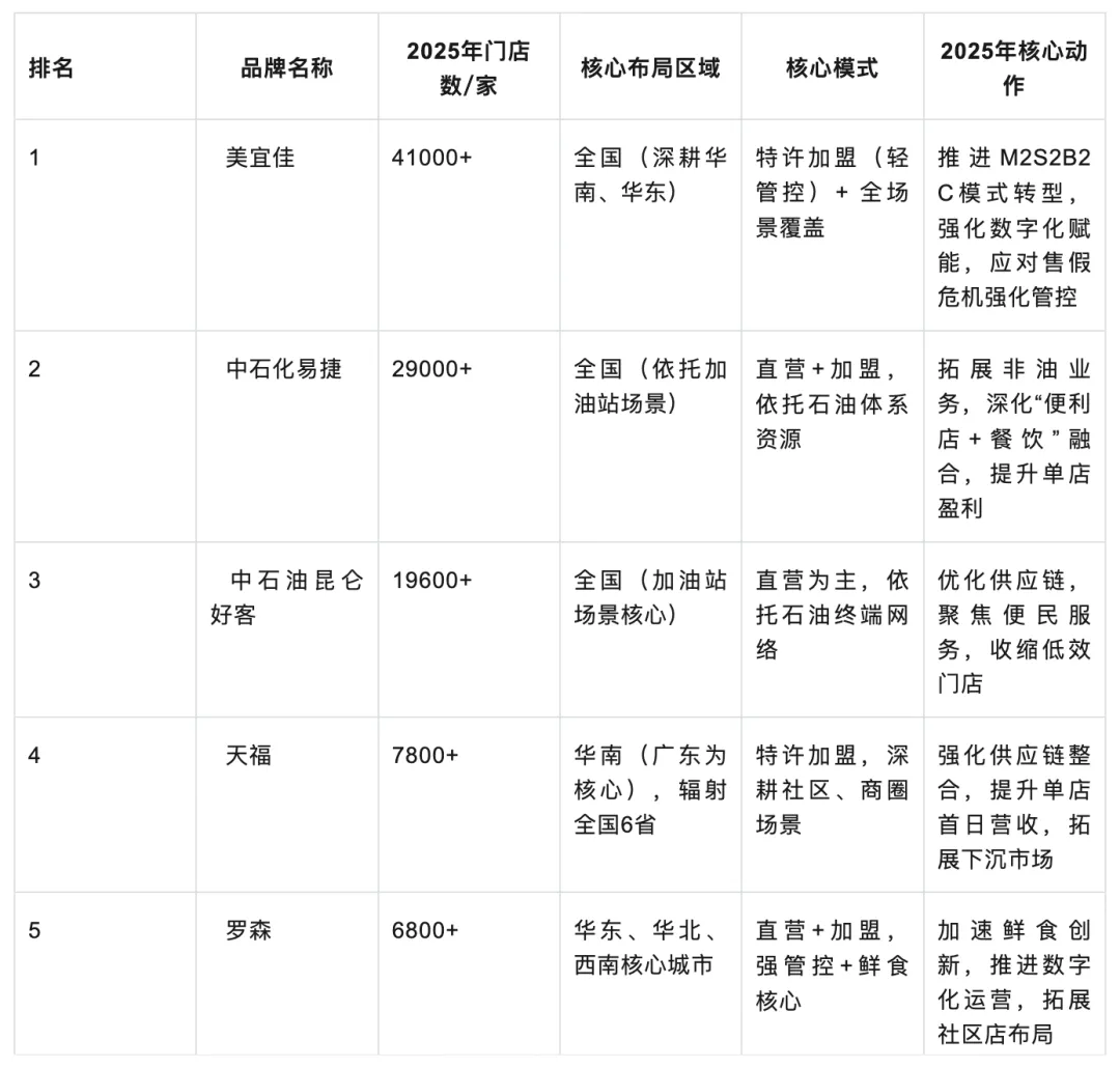 CCFA2025年公布的中国便利店百强品牌名单: