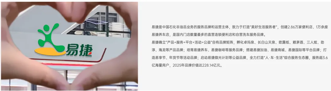 品牌创立:易捷品牌于2008 年创立,是中国石化非油品业务的运营主体,2014 年 3 月正式揭牌标志着向市场化、专业化发展 。