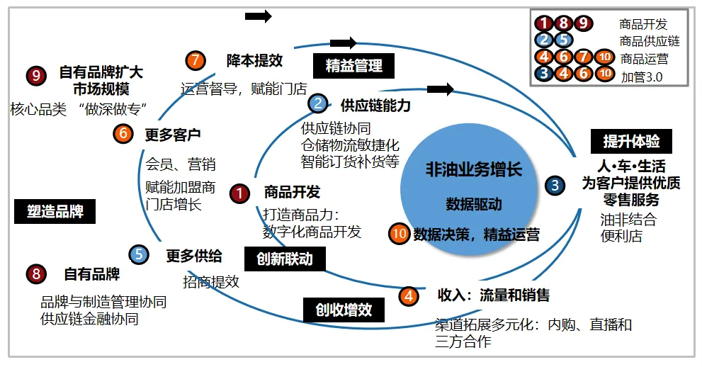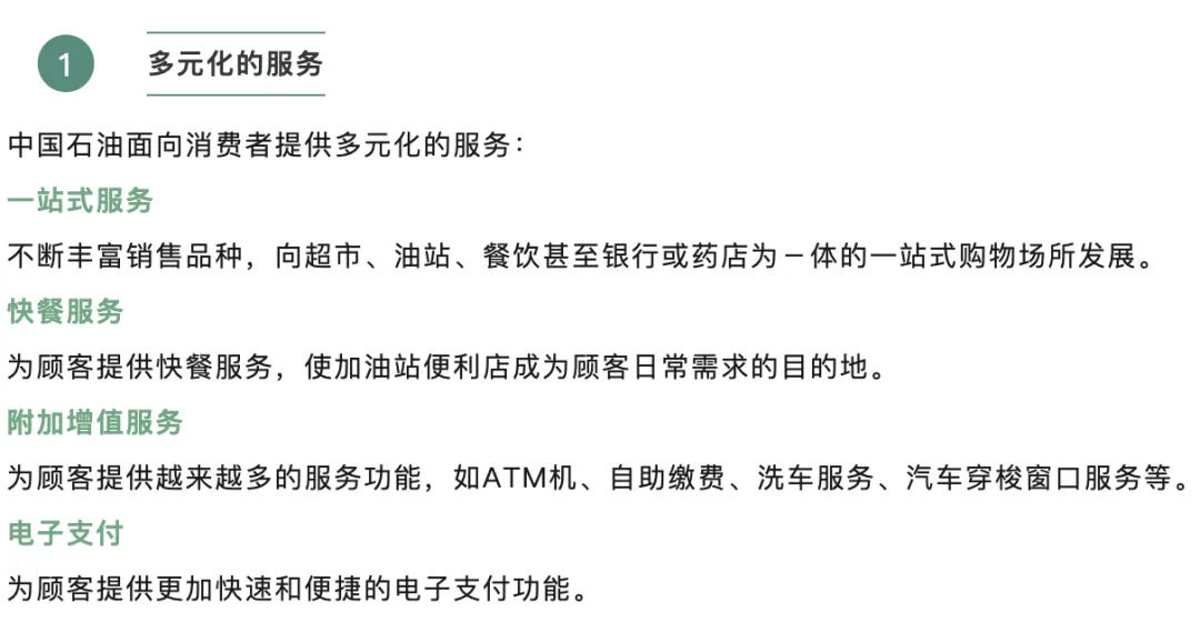 第四阶段(2024年至今,高质量发展阶段):锚定“能源+”“出行+”战略定位,推进数字化转型与业态创新,拓展跨界合作,品牌价值持续增长,线上业务快速突破,构建起多元共生的商业生态,实现从“加油站便利店”到“综合生活驿站”的转型。