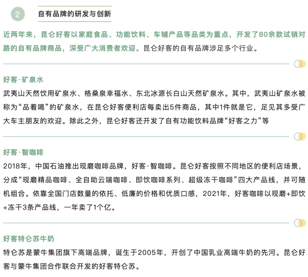 第一阶段(2007-2016年,积极尝试与布局阶段):中石油启动非油品业务规模化发展,“昆仑好客”品牌逐步孵化,初期聚焦加油站便利店基础商品零售,逐步推出自有品牌商品,搭建初步的营销与供应链体系,为后续专业化运营积累经验。