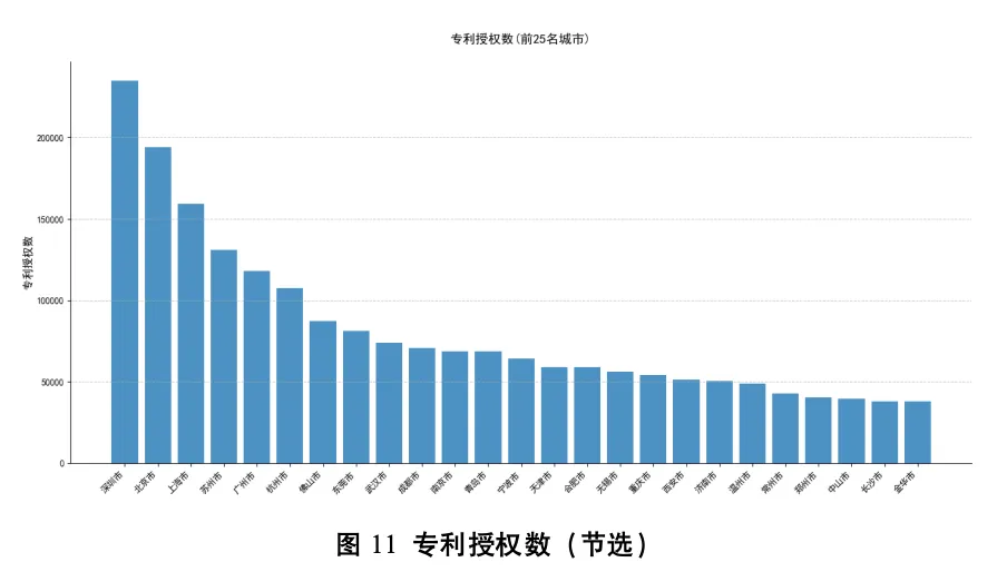 专利授权数能够直接反映一座城市科技创新成果的产出规模和市场化潜力,是衡量科技金融需求强弱的重要信号。百强城市平均专利授权数约3万件,深圳(23.51万)、北京(19.40万)、上海(15.91万)、苏州(13.08万)、广州(11.81万)等城市领跑全国,集中体现出这些地区科技企业密集度高、创新需求旺盛。