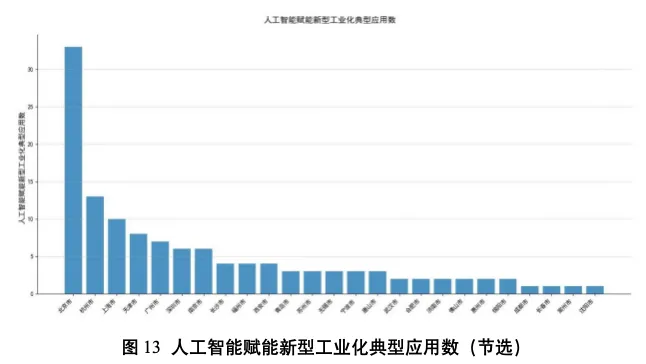 人工智能赋能新型工业化典型应用数能够反映城市在新一代技术与产业深度融合方面的前沿探索能力。数据显示,北京、杭州、上海数值较高,而多数城市为零,说明AI赋能工业化尚处于起步阶段。整体来看,该指标越高,表明城市具备更强的智能制造与产业升级实践能力,对科技金融的需求也更加旺盛。