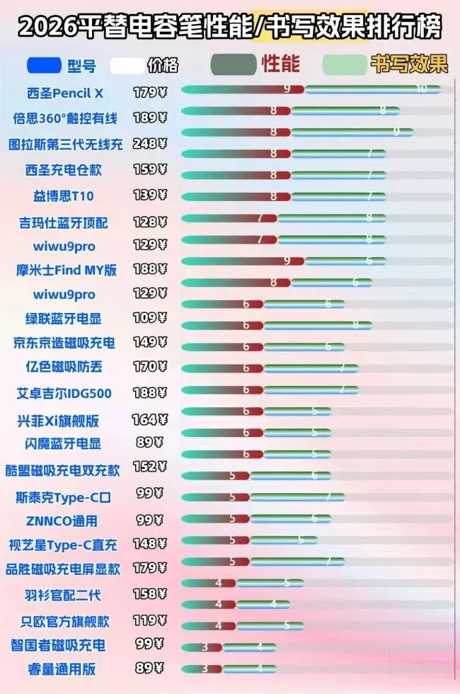 那么,哪些品牌的电容笔值得买?一支优秀的电容笔,既能保证书写和绘画顺滑精准,又能在握感、续航和功能上满足长期使用需求。为了帮助大家避坑,我整理了 2026 年十大热门电容笔品牌排行榜,并按实测表现划分为三大梯队,方便不同需求的用户参考。
